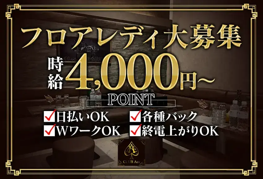 この業界では派閥やノルマが厳しいお店もありますが、エースではこのどちらも一切なく、貴女のペースでお仕事をしていただけます。