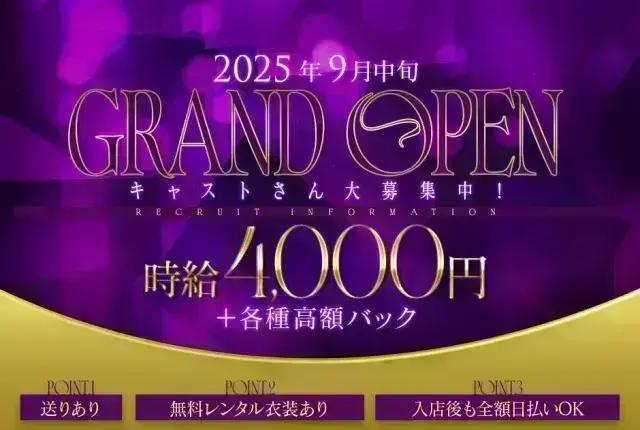 入店祝いで高額バック追加。学生・OLの少なめシフトでも高収入を目指せます。